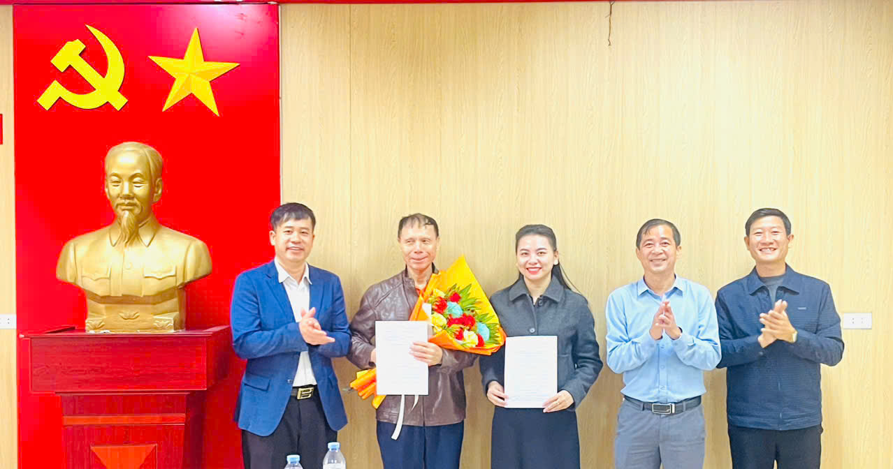 Các đồng chí lãnh đạo Trao quyết định hợp nhất hội Chữ thập đỏ xã